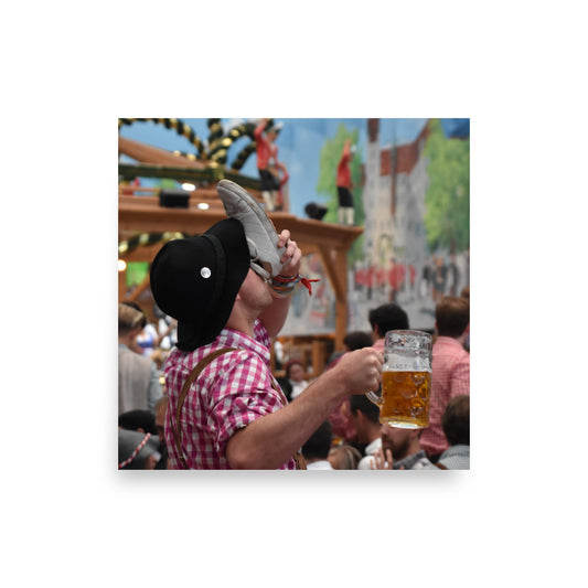 Beer Chugging at Oktoberfest Munich, Germany - Photo Print